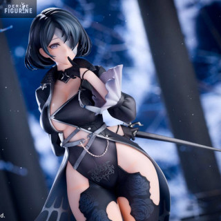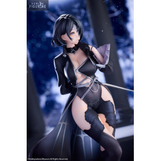 Dive into the haunting darkness with the Nevaostro Limited Edition Figure, based on an illustration by Kishi Yasuri and created by Hobby Sakura. This exceptional figure features Nevaostro in a skin-tight black outfit, enhanced by tall, sleek boots, creating a mysterious and alluring silhouette that captures the essence of the original illustration.