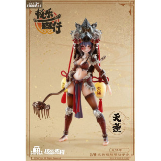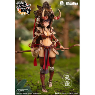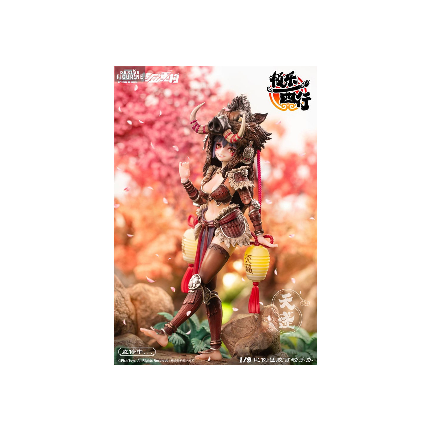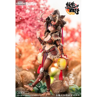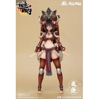 The Ji Le Xi Hang Tian Peng figure is a 1/9 scale work of art produced by Animester. It features hidden joints, offering a seamless appearance, and measures approximately 15cm in height. She is distinguished by imposing warrior armor and a singular hat, decorated with a boar's head with protruding horns, evoking the image of a tribal chief. Ji Le Xi Hang Tian Peng is thus a powerful and respected figure, skillfully mixing elements of war and tradition.