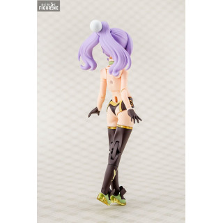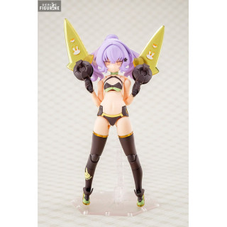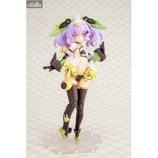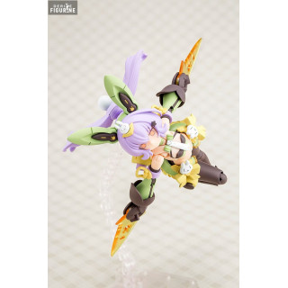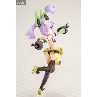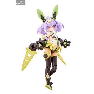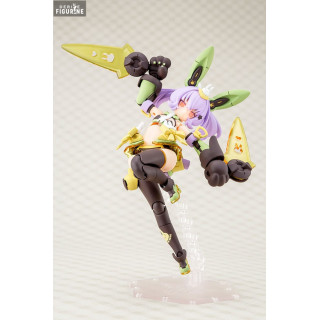 The Puni Mofu Tu figure is particularly unique with its design inspired by robotic elements mixed with a rabbit style, creating an aesthetic that is both futuristic and adorable. She sports large bunny ears, accented with black and yellow details, which complete her dynamic and colorful look. His equipment, including matching gloves and boots, reinforces the impression of power and agility, while adding a charming touch to the ensemble. Weapons, such as decorative spears and hammers, add a ready-to-fight dimension that is iconic to Megami Device figures.