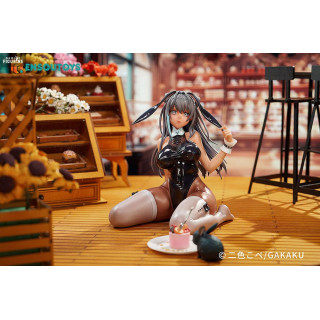 This 15 centimeter high figurine, made at 1/5 scale, is distinguished by its sensual posture and refined details. Cocoa, in a seated pose, is accompanied by an adorable black rabbit, adding a touch of mystery and charm to the whole. The bold design, enhanced by bright colors, immediately catches the eye, while elements like the bunny ears and the small pastry in front of it enrich the scene.