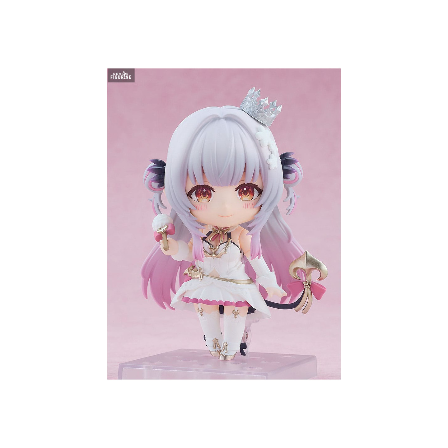 The Suou Patra figure perfectly captures the essence and sparkling personality of this popular VTuber. Depicted in a cheerful and energetic pose, she holds a scepter and sports a radiant smile that lights up her face. Dressed in an elegant white dress with touches of pink and gold, as well as a delicately sculpted crown, Suou Patra is ready to charm all her fans.