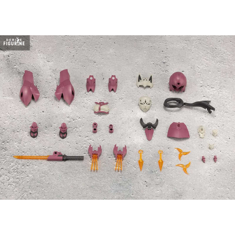 These accessories include a sword with a translucent orange blade, articulated arm and leg guards, and stylized fox masks that enhance the stealthy and menacing look of the Ninja Fox. This set is perfect for model kit enthusiasts, offering a unique customization experience.