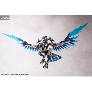 The Zenith Reveal figure stands approximately 37 centimeters tall and is part of Kotobukiya's Plastic Model Kit collection. Created at a 1/24 scale, this plastic model kit requires assembly, offering collectors an interactive building experience. The meticulous details and the many posing possibilities thanks to its full articulation make it an exceptional piece for mecha and sci-fi enthusiasts. Its translucent wing parts and impressive mechanical design reinforce the futuristic and technological aspect of the Zenith Reveal.
