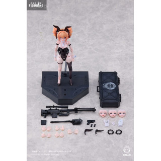 Introducing Leoni, the formidable sniper from the original Bunny Rapid Action Squad series. This 1/12 scale articulated figure perfectly captures the character’s aura and precision. With her feline features, stylized bunny ears, and futuristic design, Leoni combines charm and danger in a beautifully detailed ensemble. She is equipped with an impressive arsenal, including a massive sniper rifle, a handgun, and various accessories for dynamic and realistic poses.