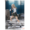 Wolf is presented in a casual student style, featuring an outfit composed of a green pleated skirt, a classic white blouse, and a black sweatshirt tied around her waist. Her accessories include a detailed shoulder bag, adding a touch of realism and authenticity to the ensemble. The rolled-up white socks and gray sneakers enhance her casual yet stylish appearance. Her flowing blonde hair and expressive large eyes perfectly capture the spirit of the Sousai Shojo Teien characters.