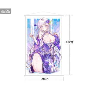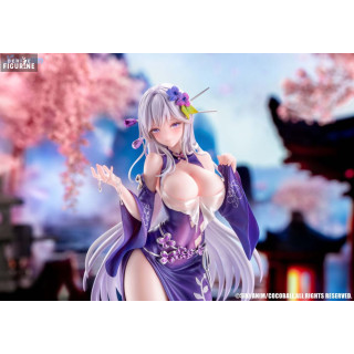 The figure showcases the character in a graceful pose, dressed in a purple kimono adorned with delicate floral patterns. Her flowing silver hair cascades harmoniously, enhancing her ethereal presence. The base, featuring a crystalline water effect, completes the aquatic ambiance and reinforces the mystical theme of this creation. Subtle accessories, such as a stylish flower in her hair and a delicate chain, add an extra layer of sophistication.