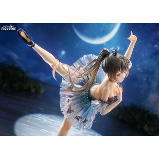 The character is depicted in a classic dance pose, highlighting her slender silhouette and perfect balance. Her ballerina dress, adorned with delicate hues and motifs reminiscent of black swan feathers, adds a mystical and sophisticated touch to the design. The intricate details, such as the ribbons on her ballet shoes, the fluidity of her hair, and the subtle embellishments of her outfit, showcase exceptional craftsmanship in the figure’s creation.