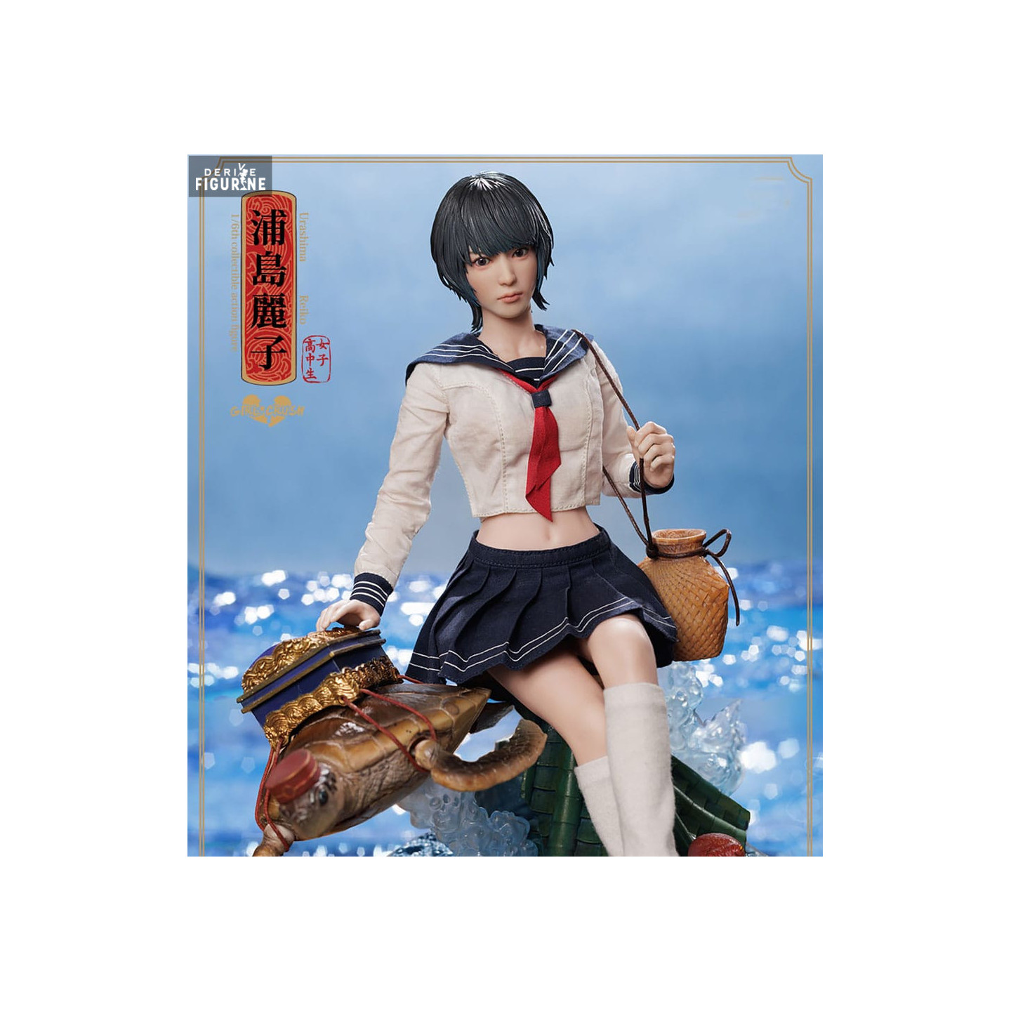Reiko wears a traditional Japanese school uniform, including a pleated navy skirt, cropped blazer, and red scarf, perfectly complementing her enigmatic expression. Every detail is finely sculpted, from the realistic fabric texture of her outfit to the intense gaze in her eyes. This Luxury Edition takes the artistry to the next level with a breathtaking diorama, featuring a majestic turtle carrying an ancient chest on its back, symbolizing the legendary journey of Urashima Tarō to the underwater kingdom.