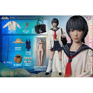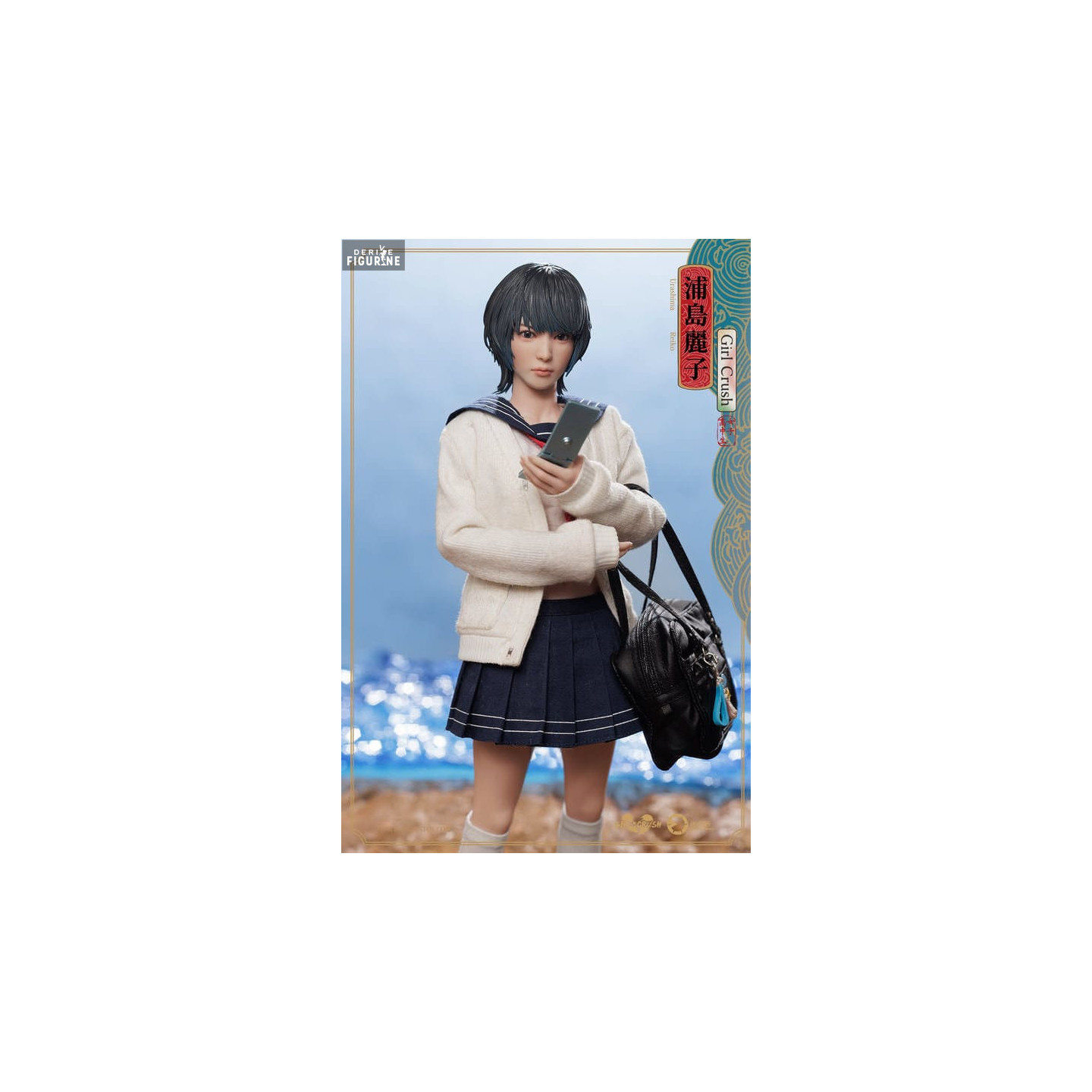 From the Girl Crush series by Asmus Collectible comes this stunning 1/6 scale figure of Reiko Urashima, a Japanese schoolgirl with a nostalgic and realistic appearance. She comes dressed in her classic school uniform, including a white cardigan, pleated skirt, red ribbon, and high socks. Her school bag even features adorable keychains, and she holds a retro flip phone reminiscent of early 2000s youth culture.