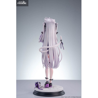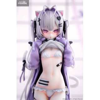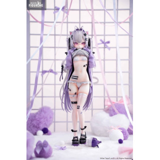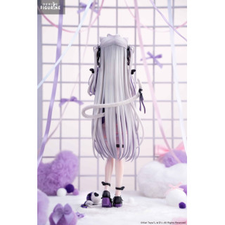Standing at about 27 cm tall, and crafted at 1/6 scale, the figure presents Shubii in a frontal pose, delicately hiding her face behind the sleeves of her loose lavender jacket. Her minimalist outfit, flushed cheeks, and dainty details like the paw-print heels and ribbon accessories make her both charming and elegant. The soft color transitions, glossy finish, and marble-style base round everything out with finesse.