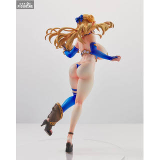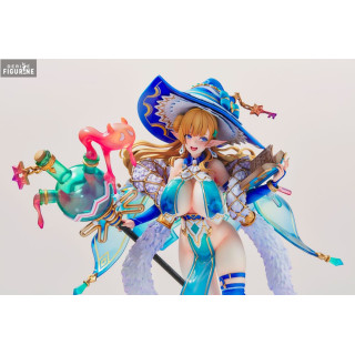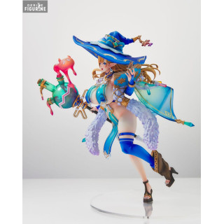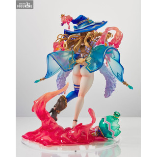 Armed with her eye-catching staff topped by a magical potion bottle and her open spellbook, Milklinde is captured mid-action, wearing her large witch’s hat, airy shoulder wings, and a striking blue-and-gold outfit that radiates playful power. The paintwork is stunning, with delicate gradients and translucent effects making this piece a true visual gem.