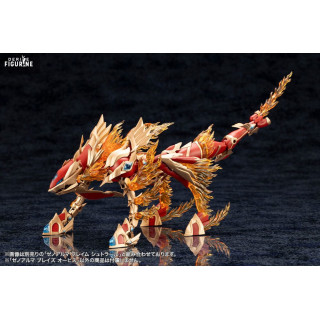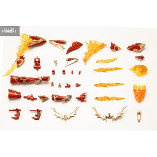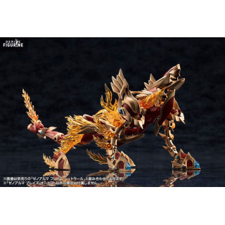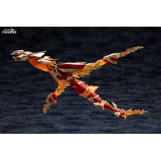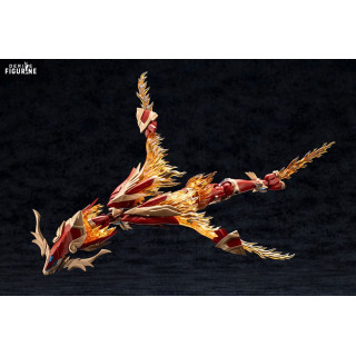 This Kotobukiya plastic model kit combines deep ruby-red plates with translucent golden flame effects: outstretched wings, aerial posture, and meticulously sculpted scales and fiery tufts. The clear resin parts perfectly capture the glow and flow of the flames.