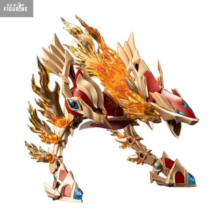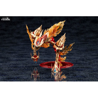 Once assembled, this 26 cm-tall kit (1/8 scale) delivers a spectacular display: layered flame effects, metallic finishes, and detailed engravings faithfully capture the majestic aura of this celestial creature ready to ignite the skies.