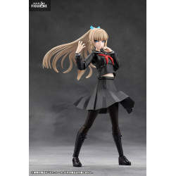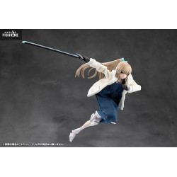The figure depicts her in a confident stance, sword in hand, poised for battle. Her sharp gaze, partially concealed by her raised hand, contrasts with her flowing blonde hair tied back with a blue ribbon. She exudes calm intensity—perfectly in tune with her role in this advanced universe.