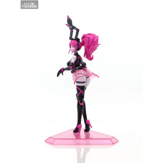 The transparent pink display base, included with the figure, ensures perfect stability while enhancing its vibrant aesthetic. The meticulous attention to detail makes this a must-have piece for fans of futuristic mecha figures.
