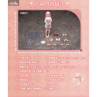 This 1/12 scale articulated figure, standing 16 cm tall, offers extensive customization options. Two interchangeable faceplates allow you to adjust her expression, while a special tool lets you change her eye direction. With ten interchangeable hands and two types of feet, Aileen can take on numerous expressive poses. Her bunny ear headband and photo-etched glasses add even more variety to her display options.