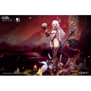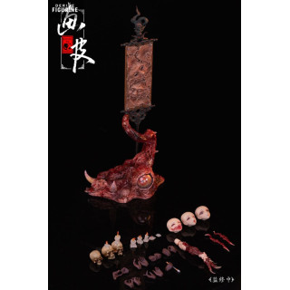 Hua Xia Shen Gui Hua Pi, an intriguing and captivating character, is beautifully brought to life in this official figure by BearPanda. Measuring approximately 16 cm tall and crafted at a 1/12 scale, this PVC creation stands out with its mesmerizing aesthetic and striking details. She dons a bold outfit with dark accents, adorned with intricate patterns and textures that enhance her mystique and formidable presence.