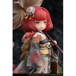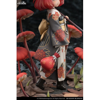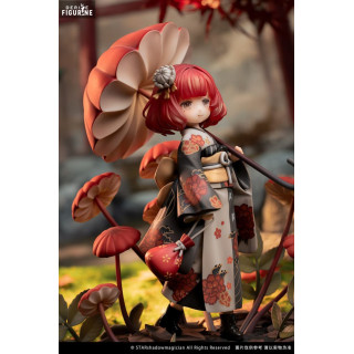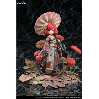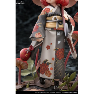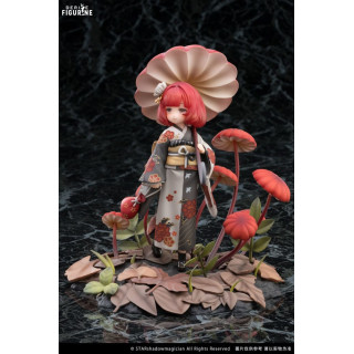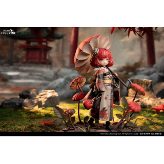 The mystical world of Reverse Studio’s fungal muses brings to life enchanting figures inspired by mushrooms and nature’s ethereal beauty. No.6 Marasmius Haematocephalus embodies this delicate balance between traditional elegance and organic fantasy, appearing as a graceful young woman dressed in an exquisitely detailed kimono. With soft, melancholic features, dreamy eyes, and fiery red hair, she exudes an air of mystery and serenity.