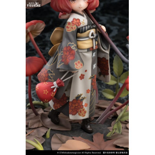 Standing at 23 cm tall, this 1/1 scale figurine showcases the exceptional craftsmanship of Reverse Studio. The character’s gentle pose, as she holds her umbrella-shaped mushroom while stepping lightly through a beautifully sculpted forest floor, enhances the figure’s dreamlike, enchanting presence. The detailed base, adorned with fallen leaves and fungi, further immerses the viewer in this organic, fairy tale-inspired world. A true collector’s piece for those who appreciate refined figurines and nature-infused fantasy aesthetics.