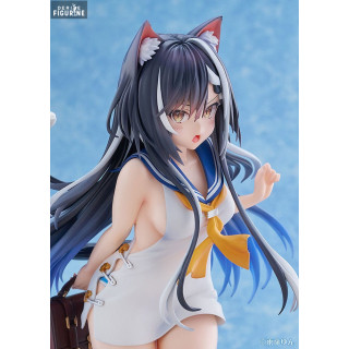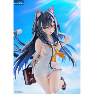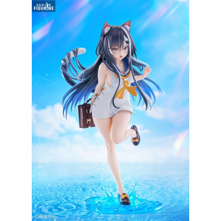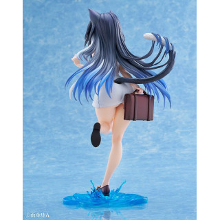 The Toshishita Kanojo figure, inspired by the artwork of the talented illustrator Amagasa Yun, captures a moment of summer bliss with exquisite detail. This feline-inspired young lady, complete with cat ears and a tail, adds a whimsical touch to her classic school uniform. Her dynamic pose, as if gracefully leaping over water, creates stunningly sculpted splashes that exude a sense of movement and vitality.