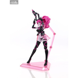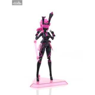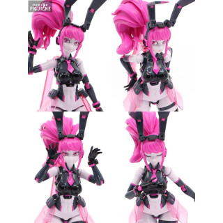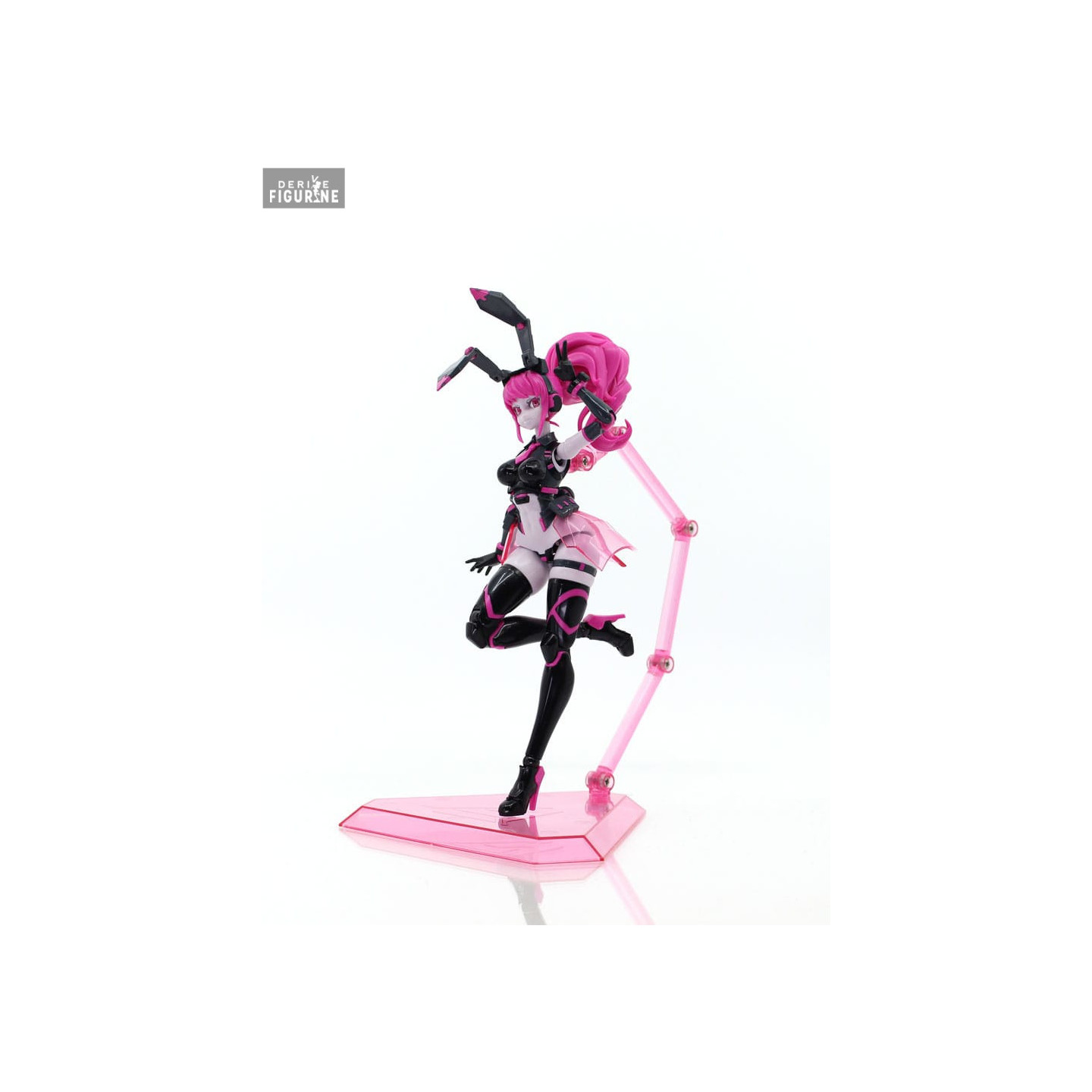 The intricate details of this plastic figure make it a must-have for mecha and futuristic character enthusiasts. Her transparent pink display stand, matching her color scheme, ensures perfect stability while showcasing her unique aesthetic.