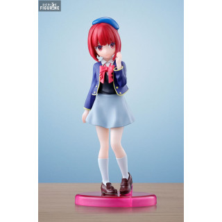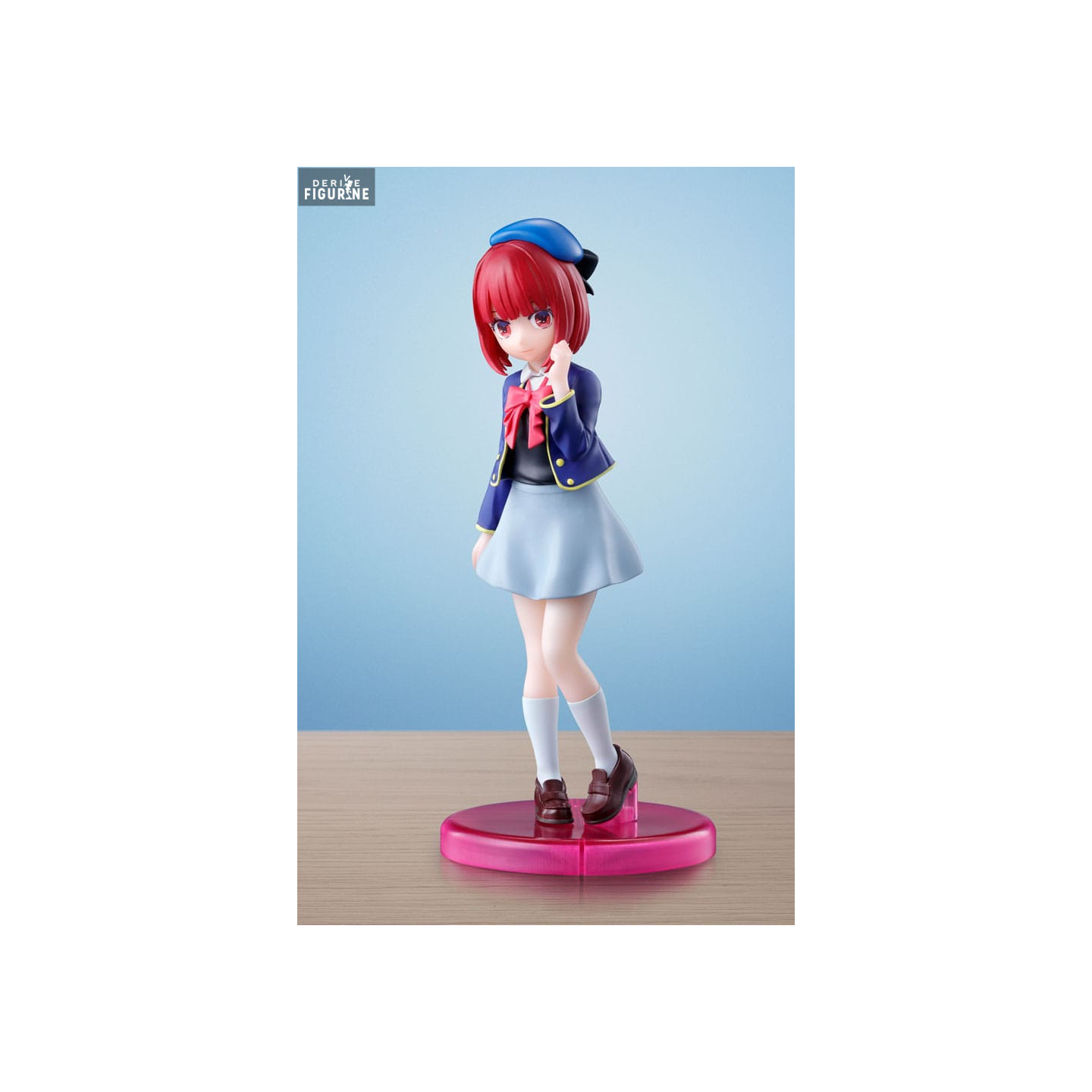 This Arima Kana figure perfectly captures her innocent charm and determination. With her shiny red hair and big, expressive eyes, Kana is depicted in an adorable and confident posture. She wears her classic school uniform, consisting of a light blue pleated skirt, a navy blue blazer with yellow trim, and a white shirt decorated with a pink bow. Her blue beret adds a stylish touch to her ensemble, reflecting her distinctive style and cheerful personality.