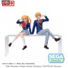 This PVC figure, standing approximately 14 centimeters tall, perfectly captures Aqua in his school uniform, symbolizing his ambiguous role between the innocence of childhood and the harshness of adult reality. SEGA, the manufacturer, has successfully rendered every detail with great precision, from his enigmatic expression to his relaxed yet attentive posture. The seated pose, characteristic of the PM Perching collection, adds a touch of sophistication and elegance, ideal for display alongside other characters from the series.