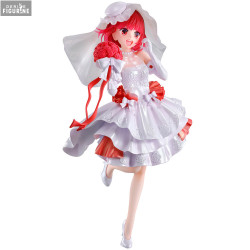 This figure portrays her in a gorgeous wedding dress that blends elegance with charm. Kana wears a white layered dress decorated with raised embroidery and accented with vibrant red satin lining. A large crimson ribbon wraps around her waist, and she holds a spherical red rose bouquet with long flowing ribbons. Her flower-printed veil complements her joyful expression and energetic pose.