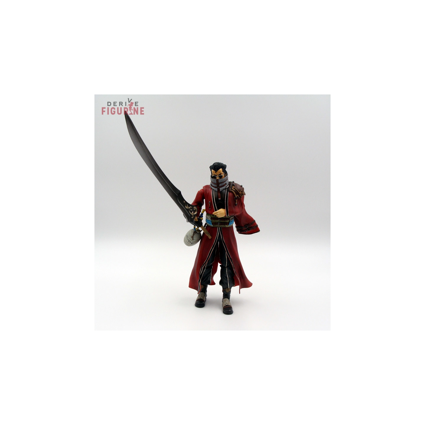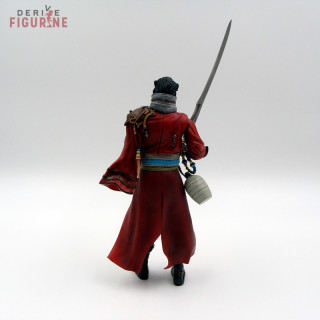 Second-hand and official Auron figure in PVC about 21 centimeters high. It is articulated and has all its accessories: a spare arm, a handle, the weapon and the base. This is a second-hand item in perfect condition from the Play Arts collection. The manufacturer is Square Enix, sold with box in good condition but a little detached behind.