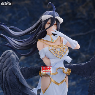 This 22 cm PVC figure, crafted by Banpresto, perfectly captures Albedo's grace and presence. She is depicted in an elegant pose, wings spread, with her hands delicately placed near her face, further enhancing her aura of mystery and allure. The meticulous details of her outfit, especially the golden framework and intricate patterns on her gown, add depth to the figure, making it a must-have for fans of the series. With its refined finishes, this piece is a must for any Overlord memorabilia collector.