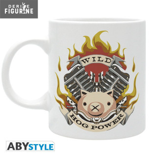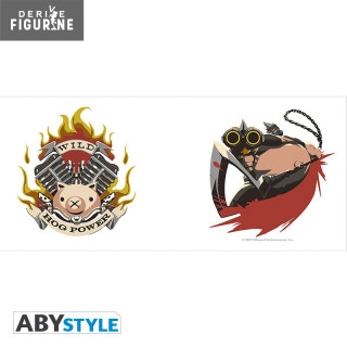 On this mug, you can see the symbol of Chopper, which it also sports in the form of tattoo on its belly on one side, and on the other the tank launching its attack traquelard.