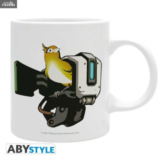 Bastion is an Overwatch character who can use his reconnaissance, sentinel and self-healing skills as well. As you can see on one side of the mug, it can also turn into a tank when it triggers its ulti. He is also often accompanied by a small bird.