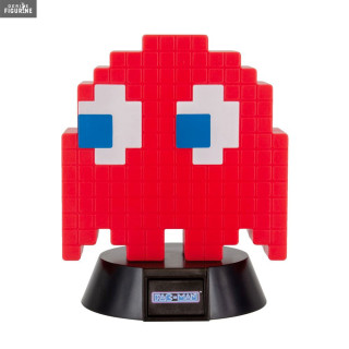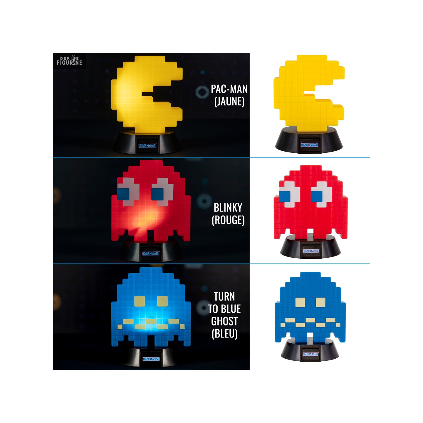 Official lamp of your choice between Pac-Man (Yellow), Blinky (Red) ou Turn To Blue Ghost (Blue) measuring about 10 centimeters. It works with 2 AAA batteries (not included). The manufacturer is Paladone.