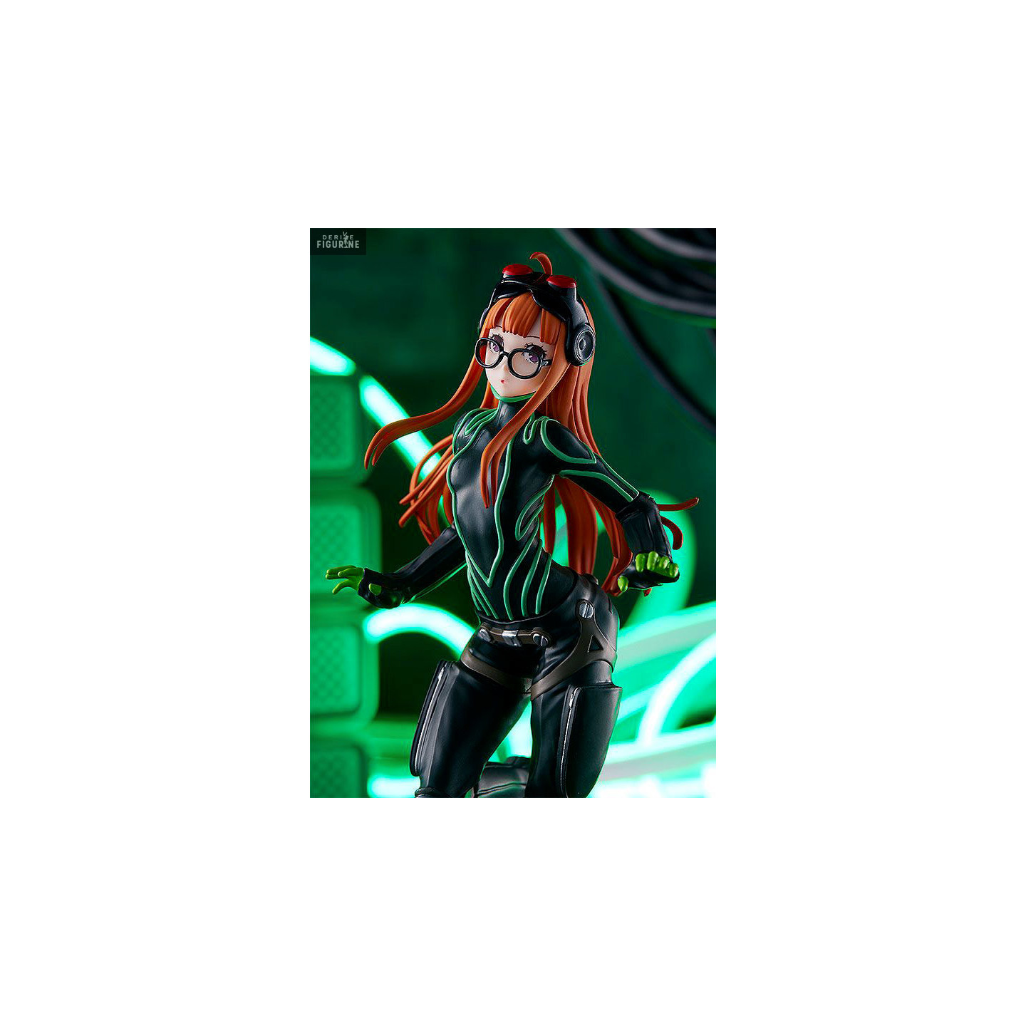 Futaba Sakura, known by her code name Oracle, is depicted in her Phantom Thief outfit, showcasing her unique style and hacking skills. Her black and green jumpsuit, gloves, and distinctive goggles are faithfully reproduced, capturing the essence of her alter ego. Her dynamic pose, full of energy and determination, perfectly reflects her role as a strategist and support within the Phantom Thieves.