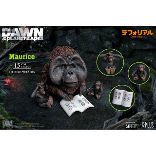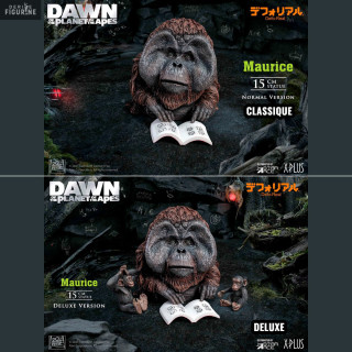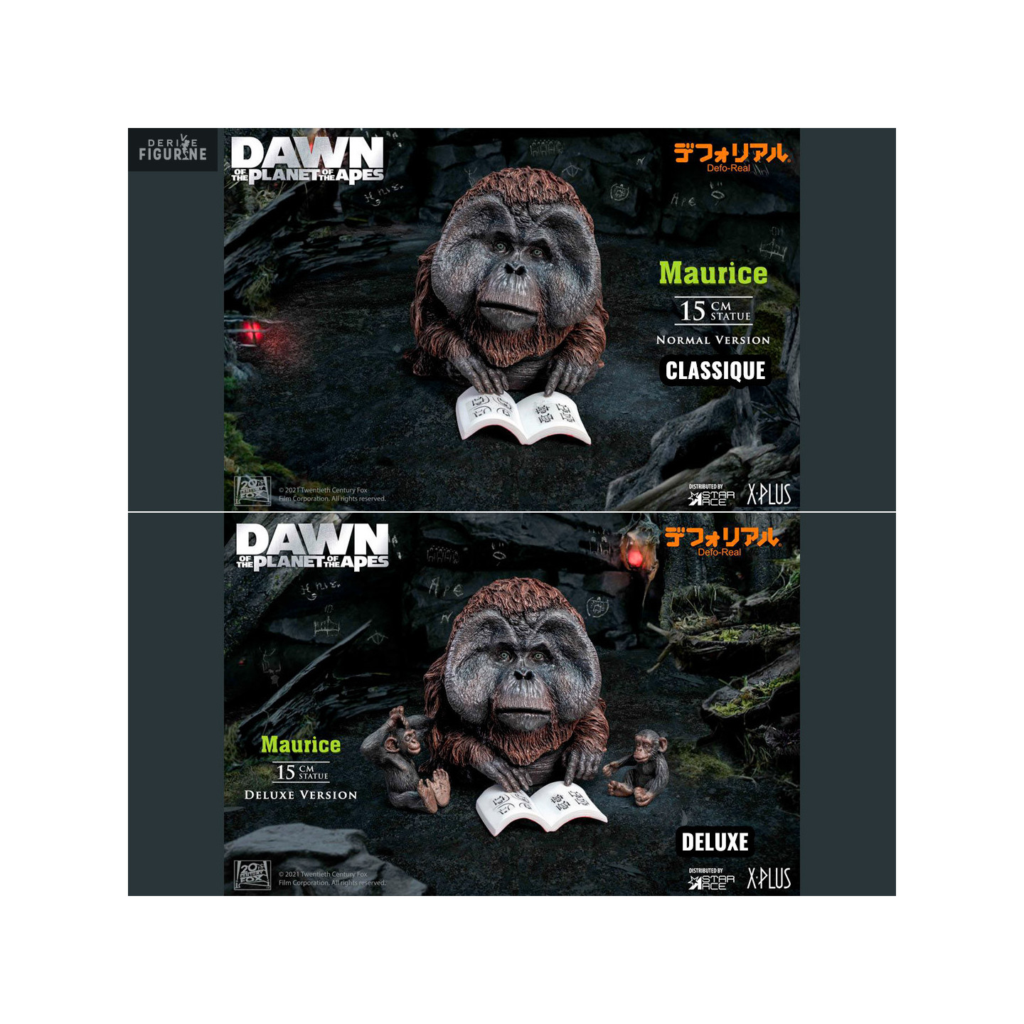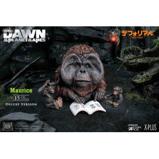Planet of the Apes features Maurice, an extremely intelligent orangutan who will become Caesar's friend. Two versions are available to you for this figurine from the Deform Real Series Soft Vinyl collection with your choice, Classic or Deluxe. The deluxe also adds two little monkeys.
