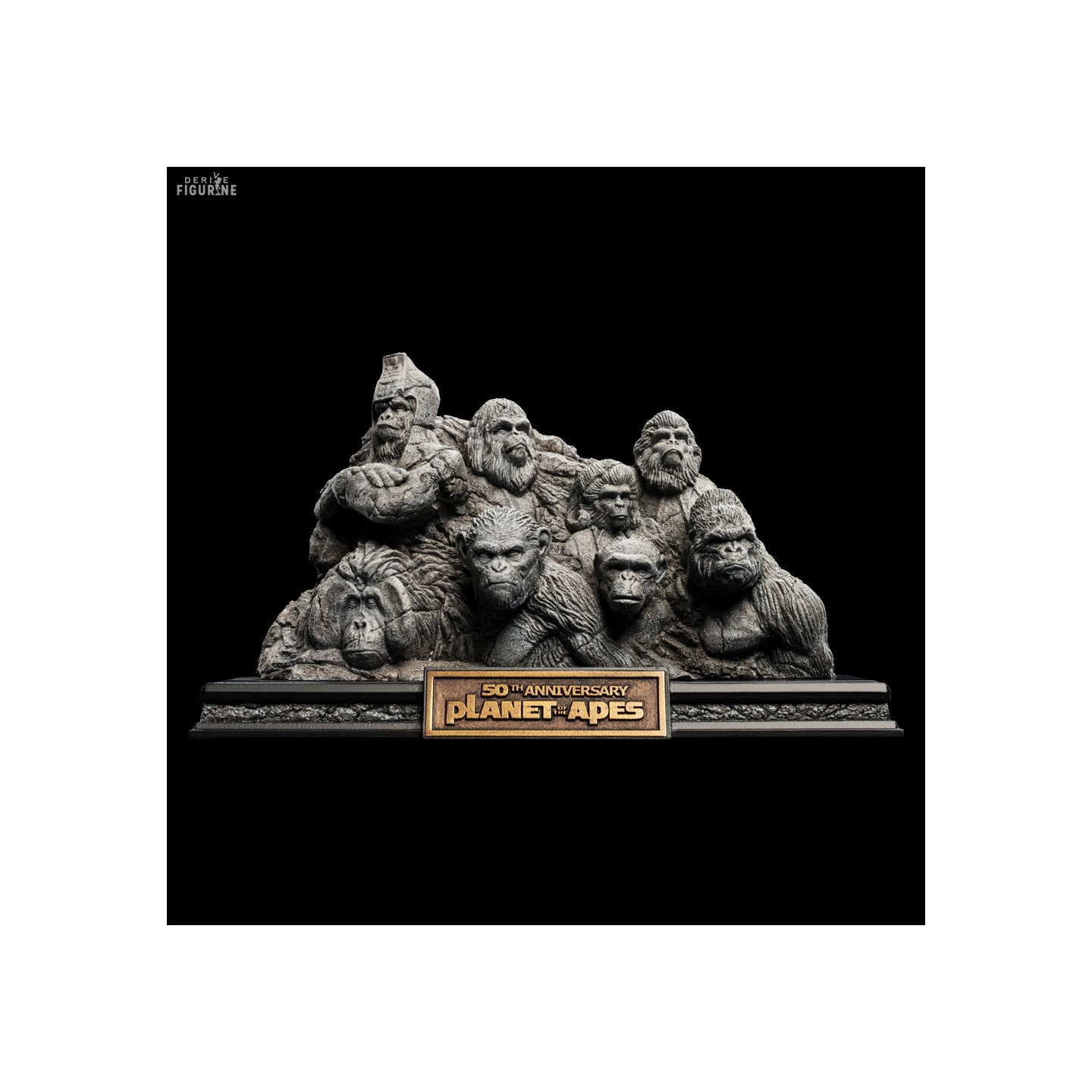 It's been 50 years since the planet of the apes came out and for the occasion, Weta decided to release a statuette of the great apes of the film. Here is a representation of Ursus, Zaius, Zira, Cornelius, Maurice, Rocket, Caesar and Luca, like Mount Rushmore in the United States.