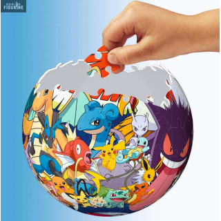 Most puzzles are flat and you can frame them for decoration when finished, but this one is a little different. Indeed, it is a 3D puzzle which therefore forms a sphere with several Pokemon on it, such as Pikachu, Magikarp, Lapras, Dragonite and many others. Once finished, all you have to do is put the puzzle on its base to display it.