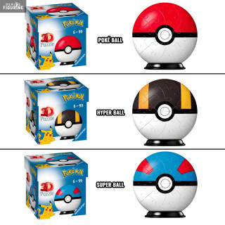 Official puzzle of your choice of the Pokemon of 72 pieces measuring approximately 7 centimeters in diameter in 3 differents versions : Poké Ball classique, Super Ball or Hyper Ball. The manufacturer is Ravensburger.
