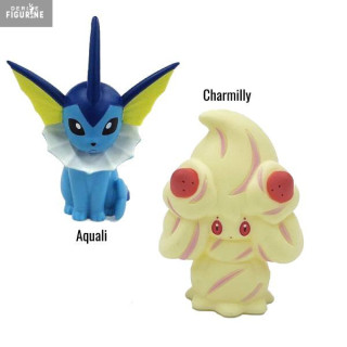 These official Banpresto figurines, each measuring approximately 6 centimeters, perfectly capture the unique traits of these two Pokémon. Vaporeon is depicted in a graceful seated pose, showcasing its elegant fins and vibrant blue and yellow colors. Meanwhile, Alcremie’s creamy form and delicate details, such as its red "fruits" atop its head, are beautifully reproduced. Made of PVC, these compact and sturdy figurines are perfect for collectors or for adding a touch of the Pokémon universe to a shelf. Whether you’re drawn to Vaporeon’s aquatic elegance or Alcremie’s fairy-like sweetness, these figurines are an excellent choice for any fan of the franchise.