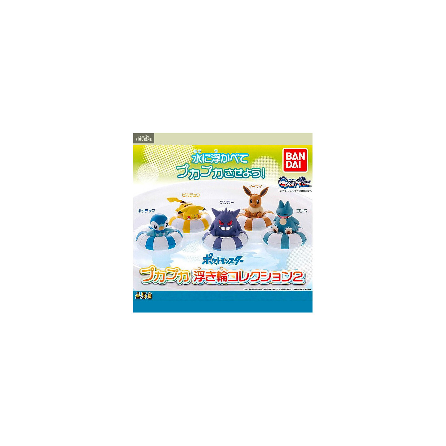 Official and random figure of Pokemon in PVC which measures approximately 6 centimeters high. It is from the Puka Puka Float collection. The manufacturer is Bandai.