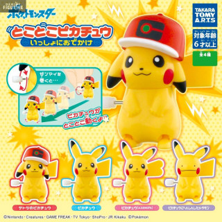 Official random figure or full pack of Pokémon in PVC. It comes from the Tokotoko Pikachu Isshoniodekake collection. The manufacturer is Tomy.