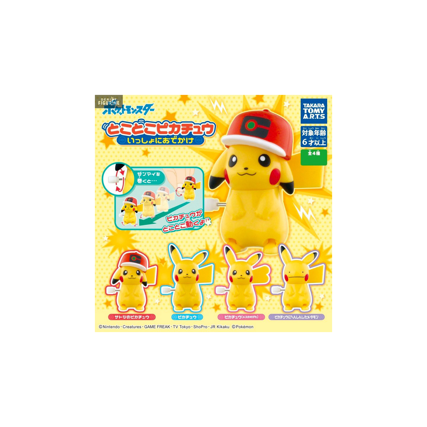 The collection of Pokémon Tokotoko Pikachu Isshoniodekake figurines highlights the best known Pokémon which is Sacha's first companion in the anime, although the beginnings could have been complicated! You choose between the complete Pack including the 4 different figurines or a random figurine alone. The particularity of this collection is that you can make them work on their own by turning the small handle!
