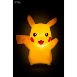 Official lamp of Pikachu, Happy which measures approximately 25 centimeters high. The manufacturer is Teknofun. Requires 3 AAA batteries (not included).