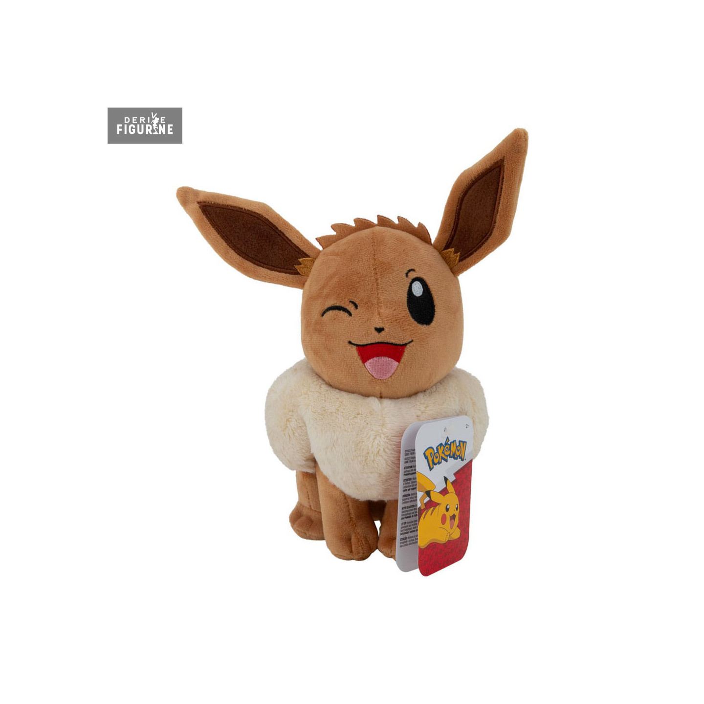 Official plush of Evoli, Winking which measures about 20 centimeters high. The manufacturer is Jazwares.