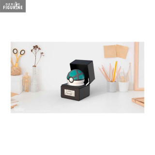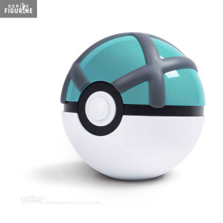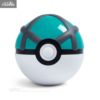 The Replica Net Ball, officially licensed Pokémon, captures the essence of the Pokémon universe in a striking collector's item and has been discovered in video games and specializes in capturing water and insect type Pokémon. With a diameter of approximately 8cm, this Net Ball features an LED lighting function, which adds a touch of magic by highlighting its iconic design. The size of the box is approximately 9 x 10 x 10 cm, making it a compact and captivating addition to any Pokémon collection. This carefully crafted replica even includes the necessary batteries to light up your Pokémon experience.