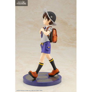 Official figure of Florian with Fuecoco in PVC which measures approximately 20 centimeters high, scale 1/8. It is from the ARTFX collection. The manufacturer is Kotobukiya.