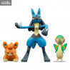 Official figures of Snivy, Pawmi, Lucario which measure approximately 5 centimeters high. They are from the Battle Figure collection. The manufacturer is Jazwares.