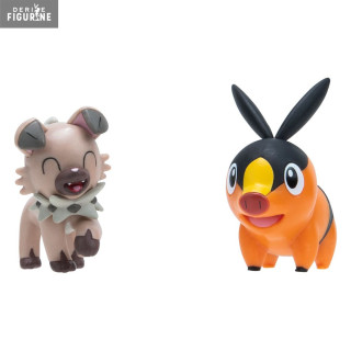 Official figures of Tepig, Rockruff which measure approximately 5 centimeters high. They are from the Battle Figure collection. The manufacturer is Jazwares.