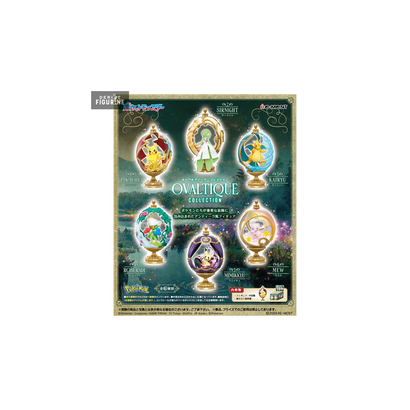 Immerse yourself in the magical world of Pokémon with the pack of six Ovaltique figurines by Re-Ment. Each figure in this iconic set captures the beauty and diversity of Pokémon in a unique way. Among them is Pikachu, the iconic Pokémon mascot, ready to dazzle with his legendary electric charm. Gardevoir stands proudly, evoking the grace and power of this Psychic-type Pokémon. Dragonite, majestic and imposing, exudes an aura of wisdom and strength. Roserade dazzles with her floral grace, while Mimikyu stands shyly, hiding her true face beneath her disguise. Finally, Mew floats gracefully, evoking an aura of mystery and magic. Each figurine is a tribute to the richness and diversity of the Pokémon universe, perfect for enriching your collection or adding a touch of magic to your living space. Catch them all and embark on an epic adventure with these adorable Pokémon companions!