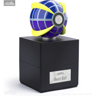 This official Beast Ball replica, produced by The Wand Company, faithfully captures the appearance and characteristics of the original from the game. Measuring approximately 8 centimeters in diameter, adhering to a 1:1 scale, it is both an authentic and impressive collectible. The replica is equipped with LED lights that illuminate when handled, recreating the captivating experience of holding a real Beast Ball in your hands. Its high-quality finish, paired with its display stand, makes it a perfect piece for collectors and Pokémon fans alike.
